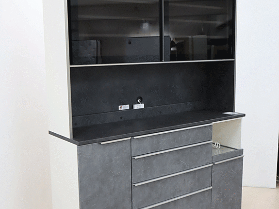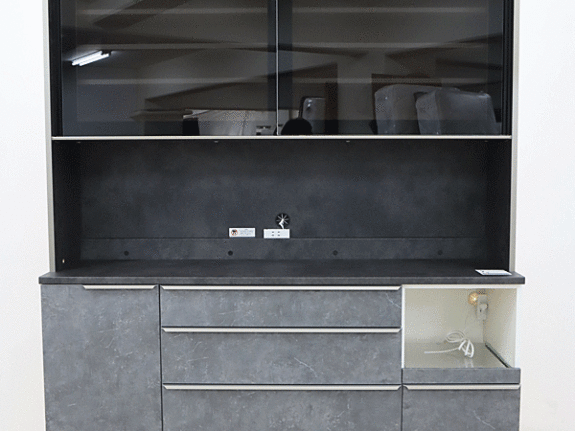 スライド収納部分にコンセントが付いていおり、蒸気が出る家電類など、使いやすいところまで引き出してご使用いただけます。