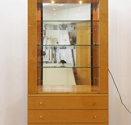 【IDC大塚家具】最高級 バーズアイメープル キャビネット 飾り棚 コレクションケース 照明付 です。
