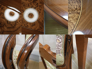イタリア製のダイニング5点セットのご紹介です。流れるような優美なフォルム、繊細な彫刻など、職人が昔ながらの技法を駆使し、丹念に仕上げた家具シリーズです。