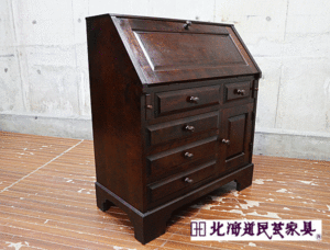 今回は、東京都千代田区のお客様からのご依頼で、北海道民芸家具のライティングビューローを出張買取いたしました。