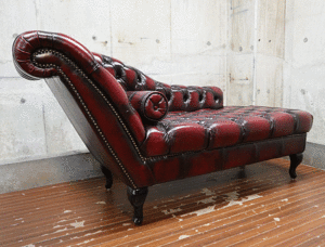 【CHESTERFIELD】英国 総革 チェスターフィールド シェーズロング デイベッド カウチソファ アンティーク レッド 出張買取 東京都世田谷区