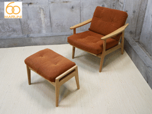 【MARUNI 60】マルニ 60 オークフレーム 1シーター&オットマン 1Pソファ&オットマン オレンジです。