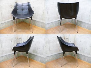 カラー:ブラック 材質:背座(内側)=ポリウレタンフォーム・ポリエステルパッディング・革、シェル/ポリプロピレン、 脚/スティールパイプ・クロームメッキ仕上 サイズ:W585 × D590 × H800( SH470, AH585)