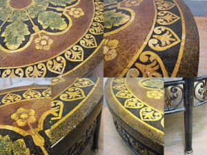英国メートランドスミス社のセンターテーブルです。大変凝った造りで、センターテーブルでありながらもオブジェのような美しさです。職人の技を感じさせる美しく豪華な雰囲気に仕上がっております。大変希少な商品です。