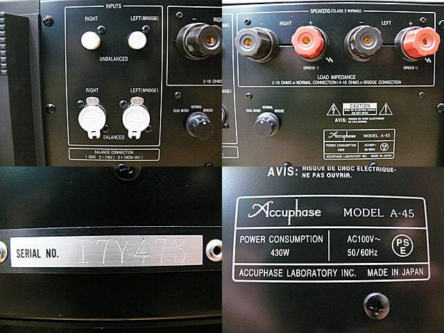 本日の買取アイテムはアキュフェーズ 純A級ステレオパワーアンプ A-45です。