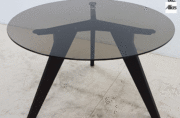 素材:天板=10mm厚ブロンズガラス、天板受け=スティール・ブラック塗装仕上、 脚=オーク材・ダークブラウン染色塗装仕上