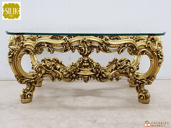 【SILIK】最高峰 シリック ガラス コーヒーテーブル/リビングテーブル ロココ調 ゴールド 猫脚 です。
