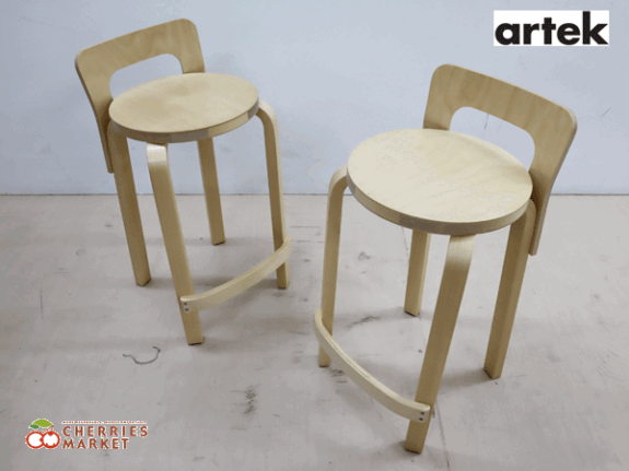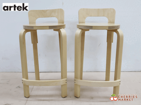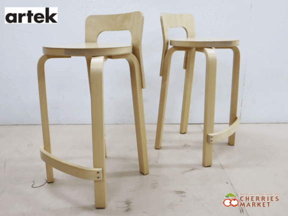 【Artek】アルテック ハイチェア K65 ナチュラル ラッカー カウンタースツール/バースツール 2脚セット アルヴァ・アアルト 出張買取 東京都板橋区