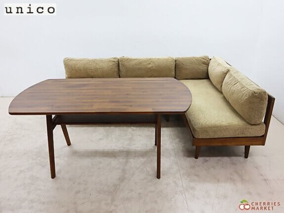 【unico】ウニコ swella スウェラ ダイニング3点セット ダイニングテーブル W1400/ベンチバックレスト/ベンチアーム キャメル 出張買取 東京都狛江市