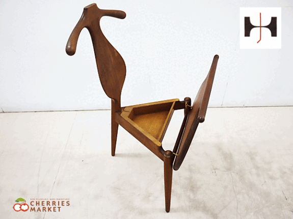 家具職人のハンス J ウェグナー、建築学教授のスティーン・アイラー・ラスムセン、デザイナーのボー・ボイエセンの三人により1942年に考案された名作椅子”Valet Chair ヴァレットチェアです。