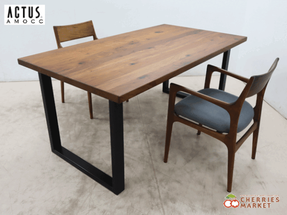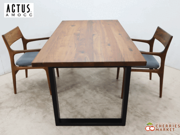 高級感のあるウォールナット材と、マットに仕上げたブラック塗装のレッグのコンビネーションが落ち着いた印象のダイニングテーブル。こちらは2レッグというタイプで、ブラックのコの字の脚部が全体を引き締めて、モダンな印象をプラスしています。また、空間のアクセントとしても存在感のあるテーブルになっています。