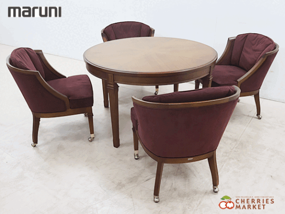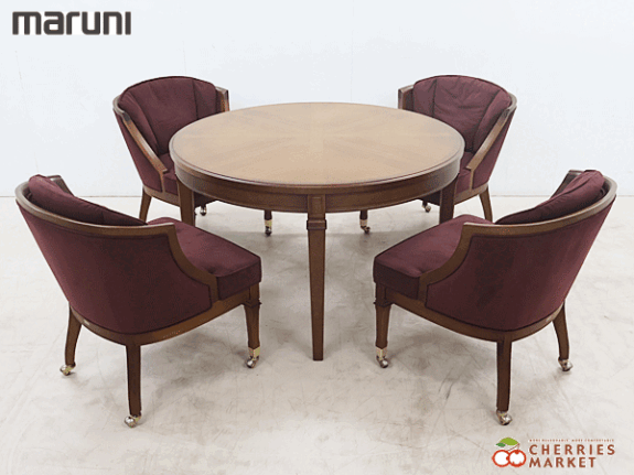 【maruni】マルニ木工 地中海 ラウンド ダイニングテーブル&地中海ロイヤル シャルル ダイニングチェア ダイニング5点セット 出張買取 東京都大田区