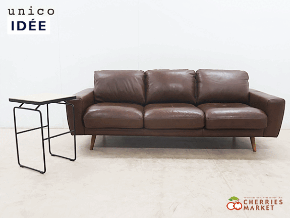 【unico/IDEE】ウニコ/イデーウニコ MOLN モルン レザー ソファ 3シーター/3Pソファ/3人掛けソファ&マクタン サイドテーブル です。