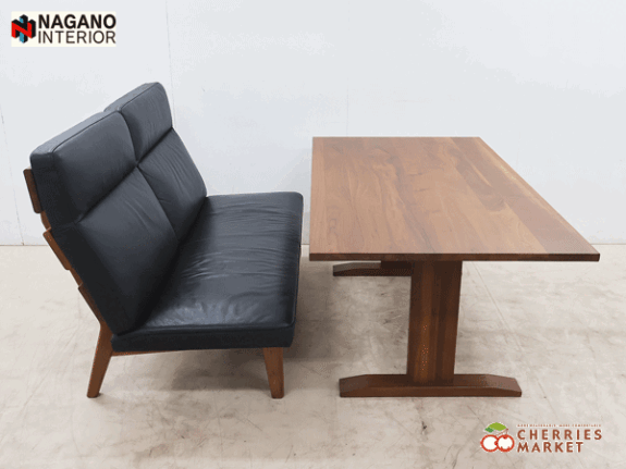 【NAGANO INTERIOR】ナガノインテリア DT605 ダイニングテーブル&KC016-2N ダイニングソファ 黒革 ダイニング2点セット です。