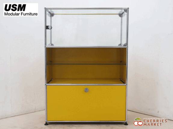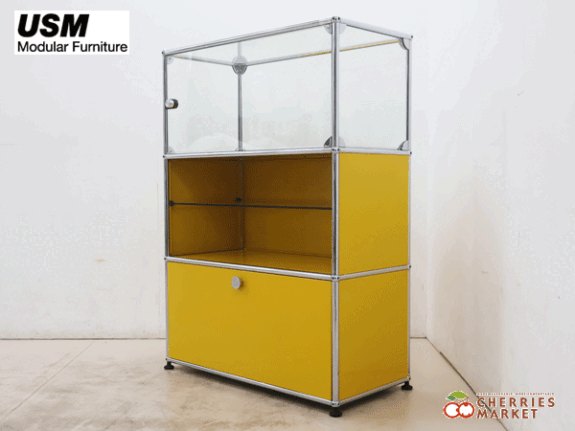 【USM Haller System】USMハラーシステム 1列3段 ガラス キャビネット/収納 ガラス ×ゴールデンイエロー です。