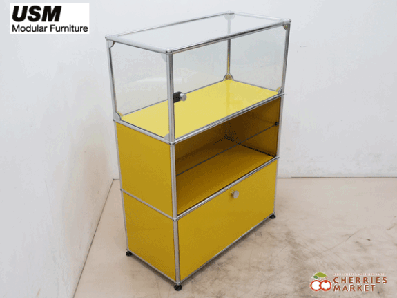 【USM Haller System】USMハラーシステム 1列3段 ガラス キャビネット/収納 ガラス ×ゴールデンイエロー 出張買取 東京都世田谷区
