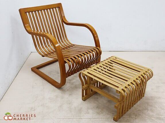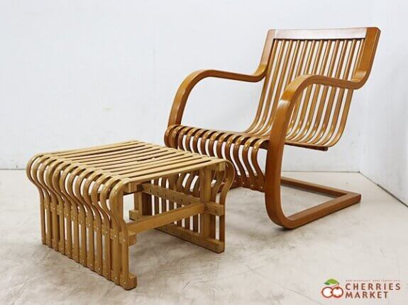 竹の弾性を利用してカンチレバー型(片持ち構造)にしたこの椅子は、当時の三越新作家具展で高い評価を受け、ル・コルビュジェの協力者であるシャルロット・ぺリアンに強い影響を与えたと言われる名品です。
