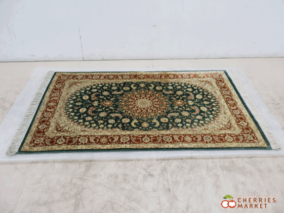 【最高級 ペルシャ絨毯】クム産 シルク メダリオン 150×98 90万ノット ラグ/カーペット 手織り サインあり 出張買取 東京都目黒区