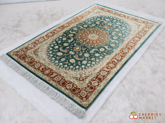 シルク特有のしなやかな肌ざわりは抜群で、絨毯の隅々まで緻密に織りあげたデザインはお部屋のインテリアを豪華に引き立てます。