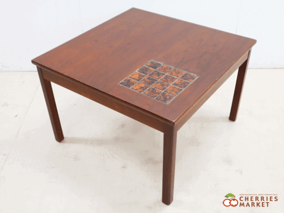 【北欧家具】 コーヒーテーブル/リビングテーブル 正方形 チーク材 タイルトップ ヴィンテージ 出張買取 東京都渋谷区