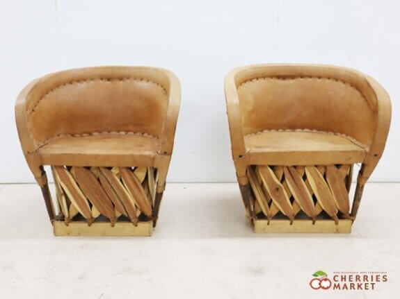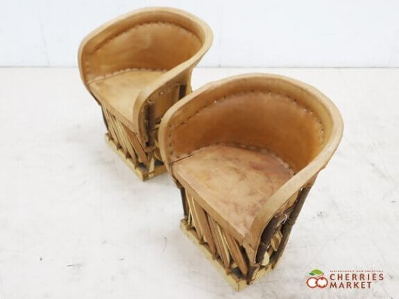 【Equipales Chair】エキパルチェア/エキパレスチェア アームチェア 豚革 民芸家具 メキシコ 2脚セット です。