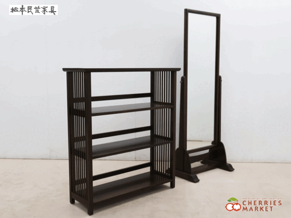 【松本民芸家具】高級 D型 姿見姿見/鏡/ミラー 117型 書棚/ブックシェルフ/オープンシェルフ ミズメザクラ 2点セット 30万 です。