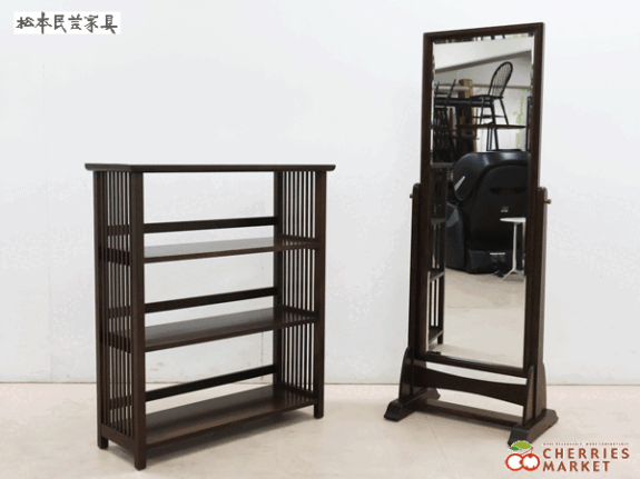 【松本民芸家具】高級 D型 姿見姿見/鏡/ミラー 117型 書棚/ブックシェルフ/オープンシェルフ ミズメザクラ 2点セット 30万 出張買取 東京都大田区