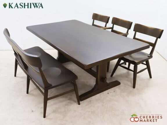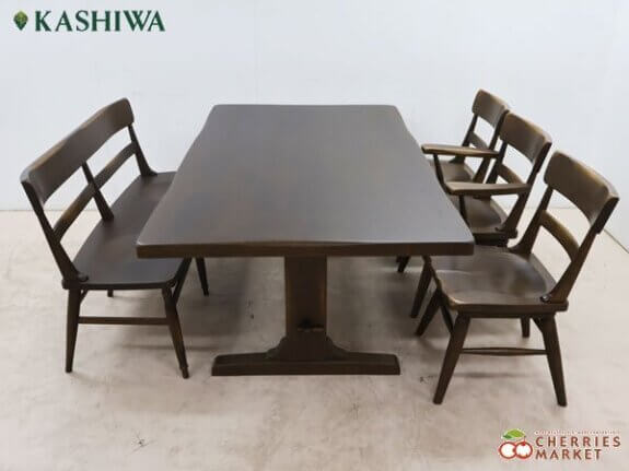 【柏木工】KASHIWA wilderness ウィルダネス KT15 ダイニングテーブル&K232 回転アームレスチェア&K233 回転アームチェア&K136 ベンチ ダイニング5点セット 出張買取 東京都台東区