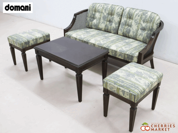 【domani】ドマーニ karimoku カリモク クイーンズライフ 2Pソファ/2人掛けソファ & オットマン2脚 & サイドテーブル 4点セット 出張買取 東京都世田谷区