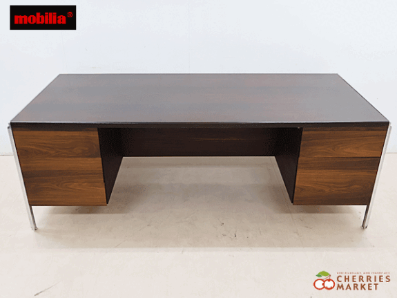 【mobilia】モビリア ニーホールデスク 両袖机/書斎机/事務机/デスク ローズウッド 鍵付 出張買取 東京都大田区