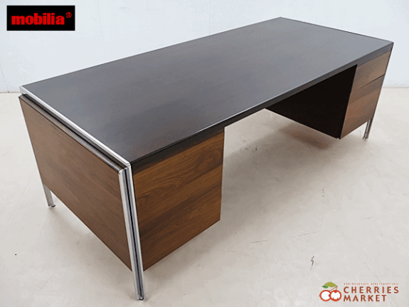 【mobilia】モビリア ニーホールデスク 両袖机/書斎机/事務机/デスク ローズウッド 鍵付 です。
