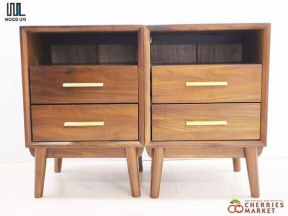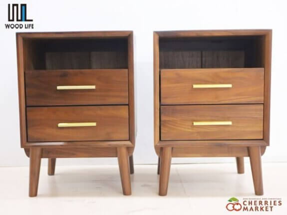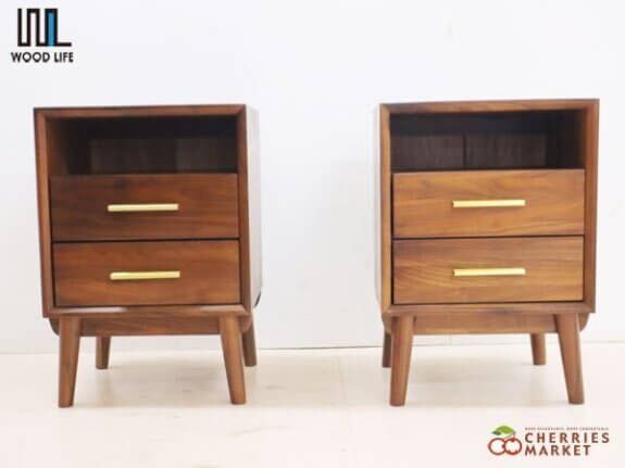【WOODLIFE】 ウッドライフ サイドテーブル K37A02 ベッドテーブル/ナイトテーブル ウォールナット材 2点セット です。