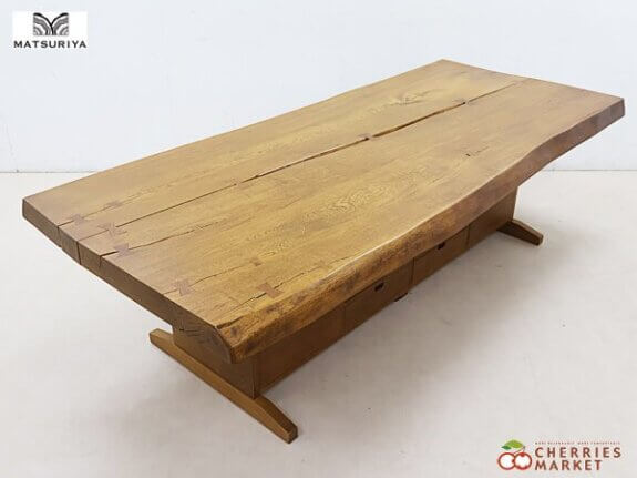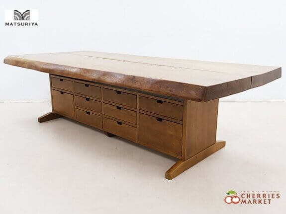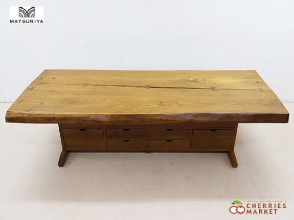【祭り屋】一枚板 ダイニングテーブル/テーブル W2200 無垢材 栓材 収納/チェスト付 出張買取 東京都文京区