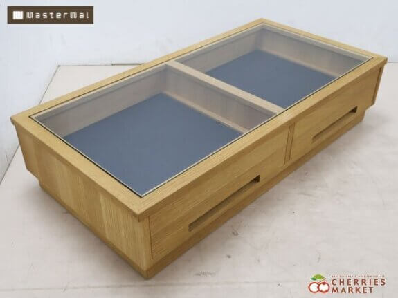 材質:レッドオーク材・オイル塗装、天板・強化クリアガラス 、トレイ・底板 PVC 張り