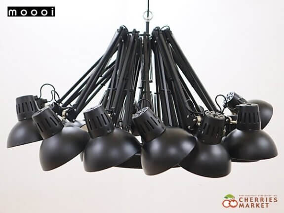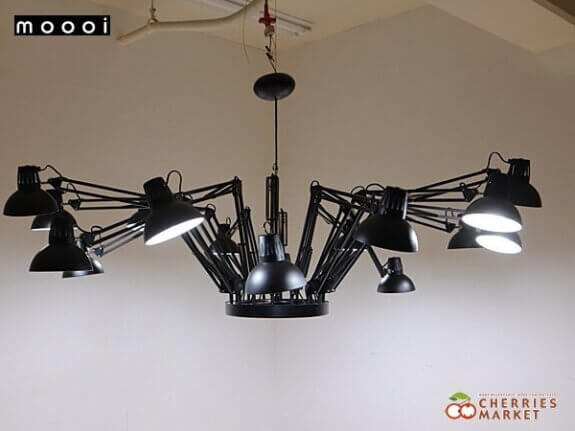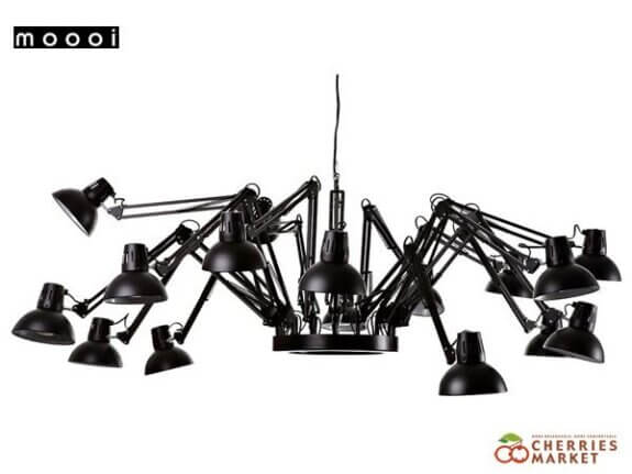 典型的なフリーアーム式デスクライトを16台でシャンデリアを作ってしまうという、ユニークでシニカルなmoooiらしいデザインです。