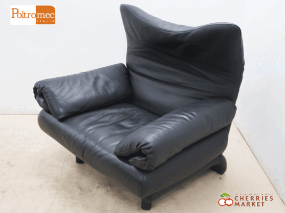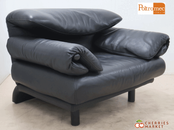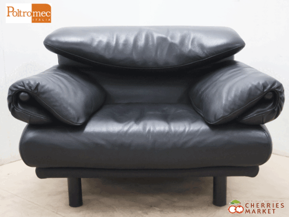 【Poltromec】ポルトロメック ジェミニ 黒総革 1Pソファ/1人掛けソファ です。