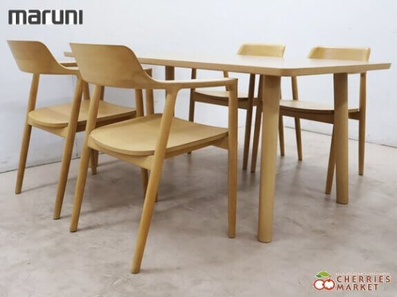 【MARUNI】マルニ木工 HIROSHIMA ヒロシマ ダイニングテーブル160 & アームチェア/ダイニングチェア ビーチ材 深澤直人 5点セット 出張買取 東京都中野区